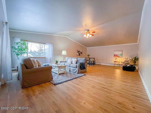South Anchorage ranch on 1/3 acre features a mature perennial garden & functional floorplan! Enjoy a large family room w/ vaulted ceiling, spacious kitchen w/ island & Jenn Air appliances, master w/ walk-in closet, & a spa-like bathroom that has been remodeled. Other updates include a new boiler & a newly replaced driveway providing an abundance of parking for cars/toys & 700Sqft Garage!