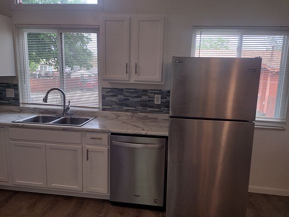 Half-duplex available June 1st for move-in: half a remodeled side-by-side duplex building which includes both the upper and lower levels pictured. Located on a large lot at the end of a private lane, away from street noise and ongoing passers-by. What may look like a tall-fenced yard being shared is the private, fenced yard that goes only with this home. The home lives just as privately as a single family property without the significantly higher cost. The property has vaulted ceilings, all-new stainless steel appliances with new counters, and air conditioning. It also has ceiling fans and includes a full-size washer/dryer. A maximum of two dogs - under 35 lbs each- is alright. A single, larger dog by mutual agreement and no pet rent or pet deposit is charged. A cat(s) allowed. The home has excellent lighting and a private deck. It also has a large common yard immediately to the west, in addition to its own 6 ft tall fenced private yard and both work well for pets. The property has large closets for the bedrooms and includes a private 10 by 10 storage building in the private yard. The property is near Kipling and 18th Ave. Superior to big-box apartment buildings and townhouses lacking private yards, with remote parking, or waiting on elevators, etc. There are no monthly upcharges for parking, storage, and pets, etc as with multiple-unit buildings so the quoted rent is what you actually pay. There is no + sign next to the rent figure indicating monthly upcharges. People frequently comment about the privacy and lack of street noise and no reason to share a floor and a ceiling with others above and below as with large developments. As mentioned above - two dogs under 35 pounds alright or a single larger dog by mutual agreement. No smoking; a credit check and fee is required. Hard to beat the privacy provided of being off the front street and on a quiet, private lane - caution, this seclusion can be habit-forming. Exterior pictures are from different times of year and the property is currently occupied until Junes 1. Thank you.
