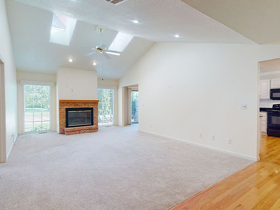 This one-story condominium is conveniently located near a variety of shopping, healthcare options, and walking trails. The unit sits on a private drive off of Lakeside Drive. Outside, the unit features an all-brick front, well manicured landscaping beds and lawn, and extra guest parking just a few feet away. Inside, solid oak flooring runs from the front door through the living room and kitchen. The living room features a soaring cathedral ceiling, a fireplace flanked by a pair of full-length windows, and two skylights for added daylight. The kitchen features white cabinets that contrast smartly with the hardwood floors and dark granite counters. There is also a subway tile backsplash. There is space for casual dining at a bistro table in the kitchen, as well as a larger dining space just outside the kitchen, featuring a 9-foot Pella sliding glass door that opens onto the back patio. The unit features Pella windows throughout. The primary bedroom features abundant natural light from windows on two sides, a full en suite bathroom with double vanities, a walk-in shower with integrated benches, and a large walk-in closet. The 2nd bedroom and bathroom can be closed off from the rest of the floor plan, creating a second bedroom suite when desired. There is also a study with French doors. See HD photo gallery and 3D virtual tour! Pre-listing inspection report on file.