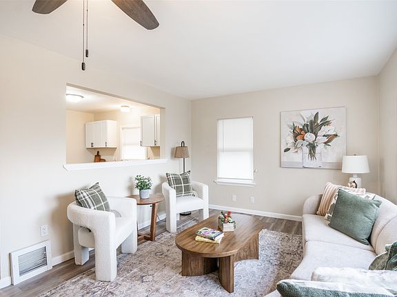 Welcome to this beautifully updated home, designed for comfort, convenience, and effortless entertaining. Situated on a large corner lot, this property offers abundant curb appeal, mature trees, and shade, creating a peaceful and inviting atmosphere. Step into a bright and spacious family room that flows seamlessly into the rest of the home. The freshly painted interior and newly updated flooring throughout enhance the modern, move-in ready appeal. The heart of the home is the large, fully updated kitchen, featuring brand-new cabinetry, sleek countertops, and state-of-the-art appliances—perfect for preparing meals or hosting friends and family. The adjacent separate dining room offers an ideal space for formal meals, gatherings, or casual dining. You'll love the bonus enclosed porch that overlooks the backyard, offering versatile space that can easily be transformed into a sunroom, game room, or home office—whatever suits your lifestyle best. The stylishly updated bathroom includes new flooring and fixtures, making it both practical and charming. Both bedrooms are generously sized and provide the perfect retreat for relaxation at the end of the day. Outside, the 2-car detached garage offers ample storage and parking. The large lot gives you plenty of room for outdoor activities, gardening, or simply enjoying the tranquility of the shaded yard. This home is full of thoughtful updates and is move-in ready. Don't miss your chance to make it your own—schedule a showing today!