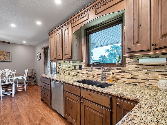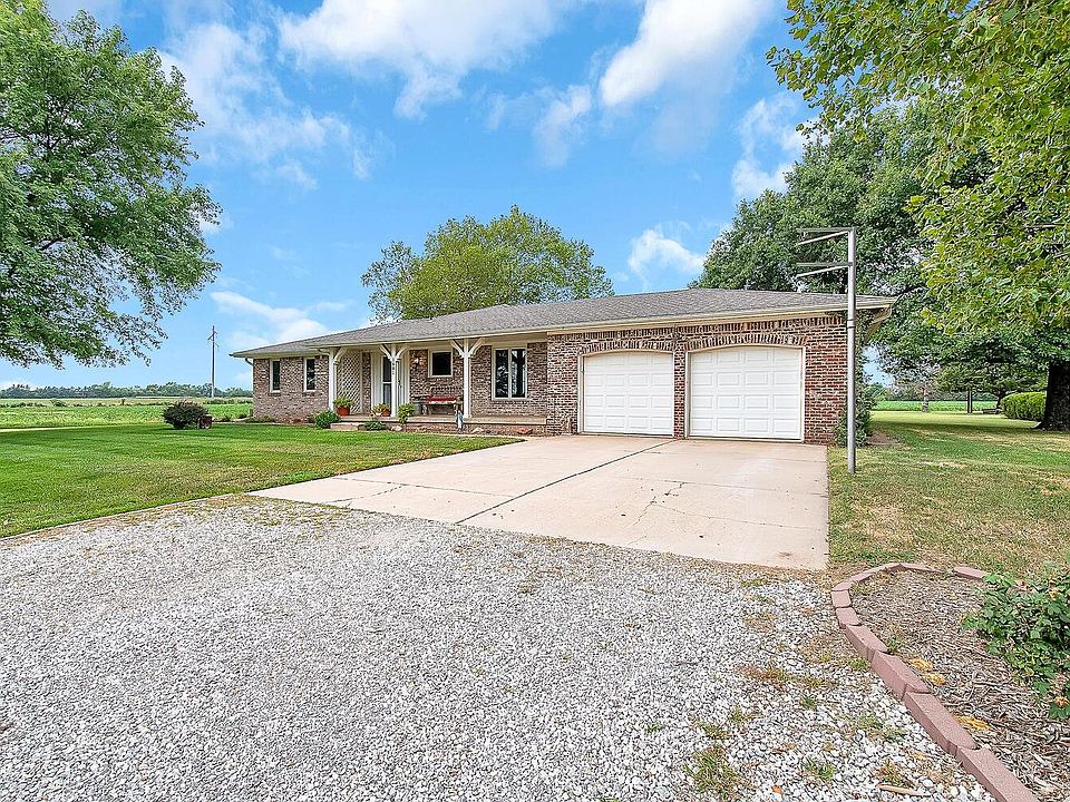 What a rare find! Beautifully updated home in the country, but just minutes away from the conveniences of West Wichita. Nestled on 0.60 acre with open fields behind, you just can't beat the location! This full brick, all-electric home features 3 bedrooms and 2 bathrooms on the main floor, as well as a bonus room in the basement. The kitchen has been renovated with brand new knotty alder cabinets with soft-close drawers, granite countertops, tile backsplash, a built-in pantry with pull-out drawers, and stainless steel appliances. The large living room features a woodburning fireplace with matching knotty alder shelving. Durable engineered wood floors flow throughout the main living and walking spaces and convenient built-ins keep you organized. The master suite includes a walk-in closet and attached bathroom with onyx vanity and shower. The guest bathroom has also been updated with an onyx vanity and tub surround. Downstairs you will love the family room complete with barn door covered storage shelves and a gorgeous wood accent wall for the TV. There is also tons of room for storage, extra space for workout equipment or other hobbies, an owned water softener and reverse osmosis water purification system. Exterior amenities include a covered porch, deck, patio, 2-level storage shed, firepit, attached 2-car garage and of course those gorgeous country views. And don't forget that this home is also in the Renwick (St. Mark's) school district and has Ideatek high speed fiber internet! Don't wait on this beauty, it won't last long!