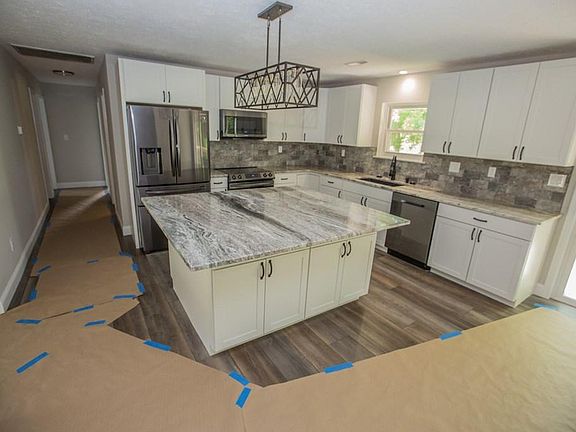 This spacious five bedroom, three full bath home has been renovated throughout. A custom kitchen that boasts new cabinets, granite countertops, black stainless appliances, and an overscale island. The master bath features dual vanities, a tile walk in shower, and powder vanity. Luxury vinyl plank flooring that is 100% waterproof. An attached one car garage and detached three car garage.
