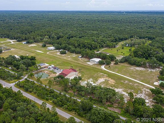 Amazing hangar property on 5 acres at Airport Identifier 34FD. Property offers 2 separate living spaces with 3000 sf of hangar space and a 18'x59' hydraulic hangar door with remote control. The guest space has 2 beds and 2 baths with full kitchen, laundry and living area. Located below the guest space is the home office equipped with bathroom, air conditioned workshop, built in workbench, refrigerator, TV's, security system, and garage. The main house is in the middle of construction on the other side of the hangar and has been fully rebuilt from the floor to ceiling. Designed with all of the best products available, the entire home is set up with control 4 smart home system and has been hard wired for network, phone, tv and audio, all homerun Pex plumbing, climate control in every room, impact windows, and sliders and more. The kitchen is ready for entertaining with 2 full sized ovens, 36" Hibachi cooktop, 7 burner electric cooktop, 6' Frigidaire refrigerator and freezer, and Frigidaire dishwasher. The downstairs of the main house has an open great room that is open to the upstairs loft and master suite. Sitting on the 2nd floor is the master suite with bar area and sliders that lead out to the balcony overlooking the airstrip and wildlife that wander through the property. Master bath has large walk in shower with 2 front, 2 rear, 2 rainfall heads, and 2 wands including LED lighting. If that's not enough there are 2 toilets, large acrylic spa tub, and double sink vanity. Adjacent to the bathroom is the huge walk in closet with built in space for safe, washer and dryer, and center island. Material needed to complete the main house is on site and included in the purchase price. No expense has been spared in the construction of this property. The exterior has all new hardi, coquina shell embedded stucco, and metal roof. Entering the gate you will be amazed by the size of this hangar property and all it has to offer. Contact listing agent Jodie Stratton for showings 386.566.1237