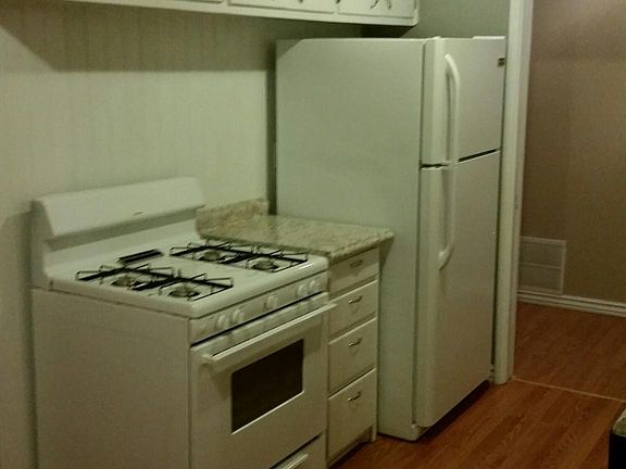 Just cleaned and ready to move in. Garage has been converted for third bedroom. The kitchen has a range and refrigerator. Small breakfast nook in kitchen and larger area for living/dining combination. Deck off the east side for summer grilling. It also has chain link fenced back yard for your pets. Comes with shade trees also!!