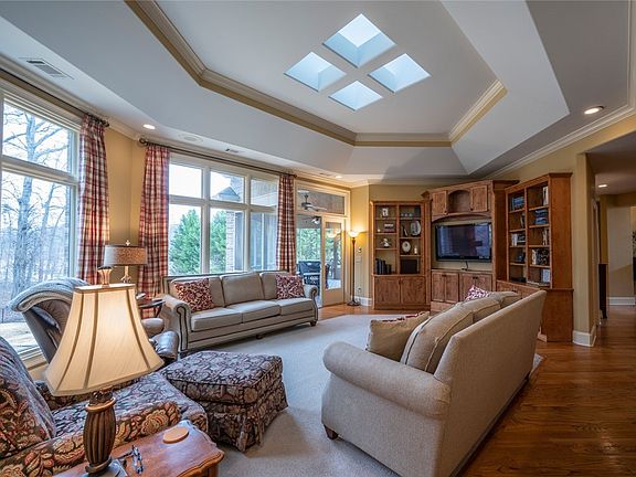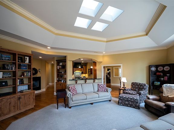 All brick Beautiful custom build 5-bedroom 4.5 bath home containing 5,800 square feet. Ideally located and designed for the family. Quiet, secure, cul-de-sac in the Grove Hill Subdivision. Formal dining room sided by a dual gas fireplace, HUGE living space with natural light raining in from full pane Lincoln windows. Kitchen perfectly located with ease of access to dining room, breakfast nook, and living space. Rich red oak floors, custom cabinetry, Kenmore gas over electric rang, Bosch dishwasher, and solid countertops. Spectacular screened outdoor area provides private views of the golf course! Full walk-out basement with recreation room, wet bar, workout room, wrapping room with custom storage, large living space, and a theater. Two bedrooms with full bath completes the bottom floor. Walkout covered entertaining area with gas fireplace, large backyard that includes a concrete pad basketball area. New roof installed! Home is an incredible place to live!