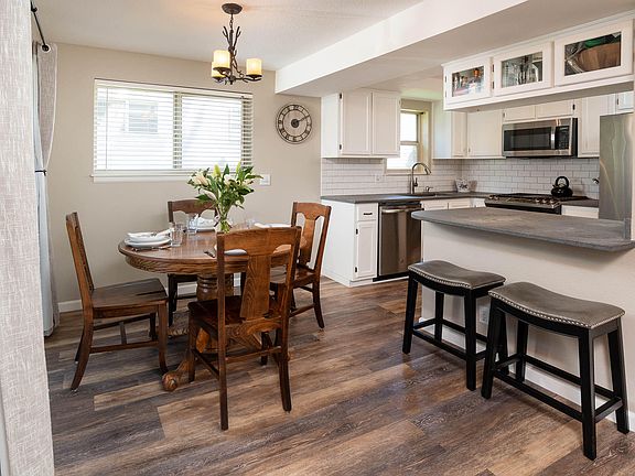 A charming, tastefully updated two bedroom townhouse at the epicenter of Bend's vibrant east side renewal. This home has a fantastic layout for easy living and maximum space. On the main floor, find a great room, dining nook, light and bright kitchen with ample storage, and powder bath. Upstairs, find a sunny ensuite with southern light and a walk-in closet, spacious laundry with built-in cabinetry, and second bedroom plus bath with a private office or craft space. Outside, enjoy a lovely back patio for