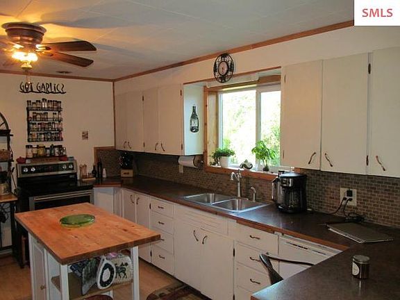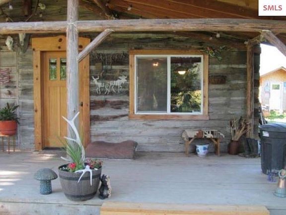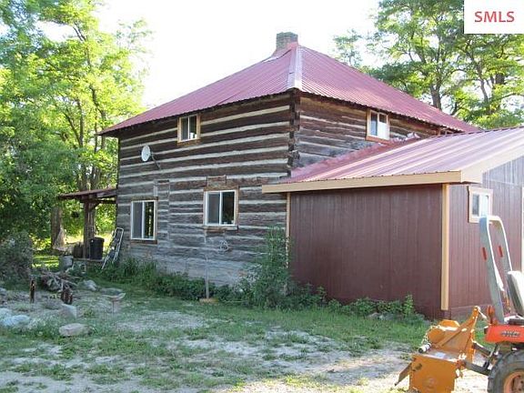 Top of Idaho classic log home. This turn of the century craftsman-built log that will allow you to own a part of North Idaho history. Close to the Canadian border all 3 acres are usable with garden spot, orchard, and pasture for your animals. Amazing views in every direction. Front Porch is for sitting and sipping your coffee surrounded by mature shade trees, lots of beautiful flower beds and a water feature. The home is heated with a "HeatMor" wood furnace that circulates hot water to hot water radiators in the home. All the mess of heating with wood is outside next to the woodshed! Recently installed electric wall heaters can be used when you go away on vacation! Public water system, county road frontage, with all kinds of wildlife abounding. Three Bedrooms, two baths, newly remodeled bathroom downstairs, and newly added laundry, with lots of room and a pantry. A quiet retreat in beautiful North Idaho. And fruit trees, an orchard with 5 kinds of apples, 3 kinds of plums, pear, and apricot trees.