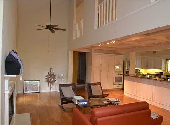 Looking for a nature retreat in the center of town? Look no further than this contemporary home sitting privately on an acre of park like setting! Natural light permeates the home. Recent upgrades (per seller) include new roof (2013) and new appliances. Spacious open floor plan including a huge loft area. Hardwood floors downstairs. Large deck extends your living space to outside where you can enjoy flowering shrubs and fruit trees as part of your view. Call today!