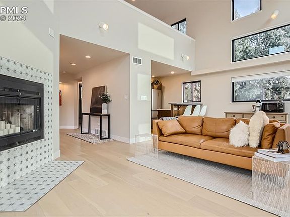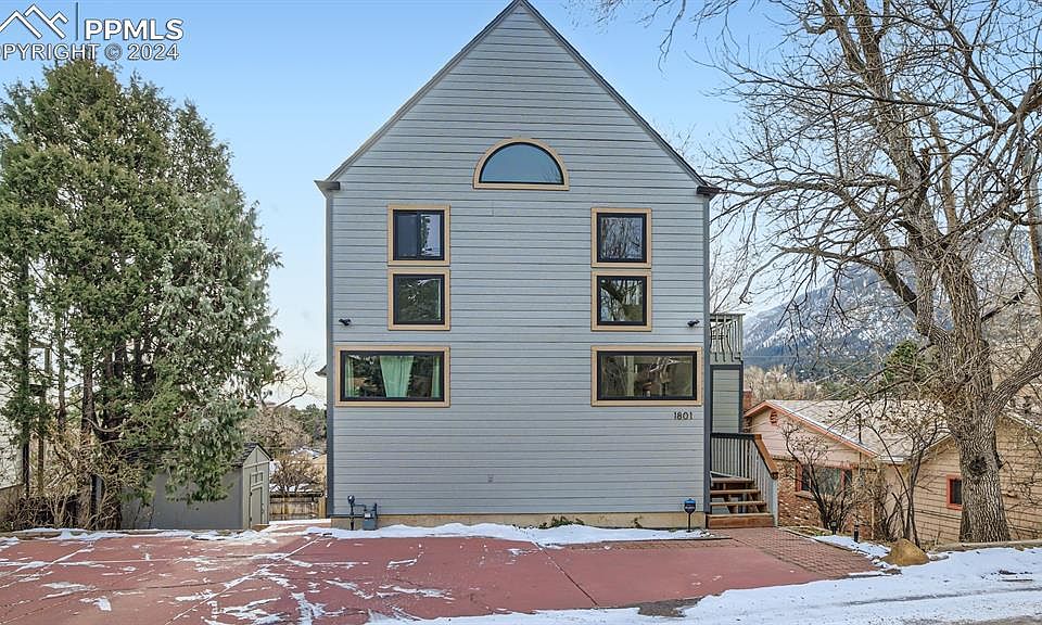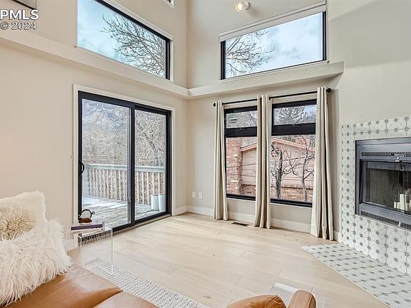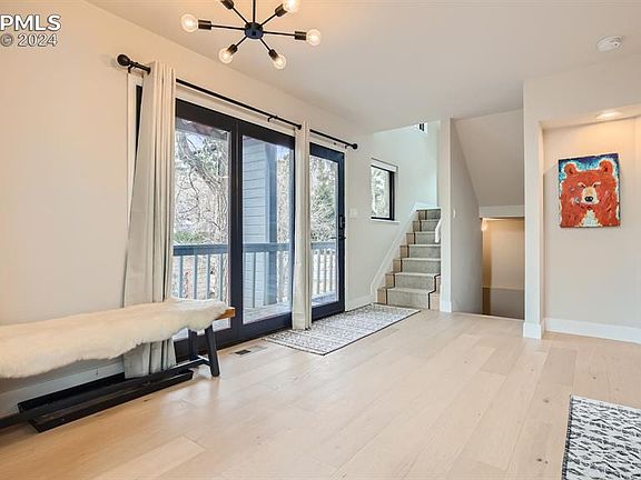Discover this contemporary gem located in the vibrant heart of Cheyenne Cañon. Constructed in 1985 and having welcomed only two owners, this property exudes a modern charm and offers an array of impressive features. Each level of the home includes its own bedroom and bathroom, with the basement having the potential to serve as an expansive secondary primary suite. The main level boasts light, contemporary wood flooring, complemented wool carpeting on both the main and upper levels. Enjoy breathtaking views from every floor, encompassing the Broadmoor hotel, Cheyenne Mountain, the Zoo, and Will Rogers Shrine. The home has undergone significant updates, including a new roof in 2020, sleek black Anderson windows in 2021, fresh interior paint in 2022, and updated flooring and carpeting on the main and upper levels in 2022. The water heater was also replaced in 2023. The upstairs features a spacious, open loft-style suite complete with a large ensuite bathroom and ample closet space, not to mention its own private deck for serene moments. Since 2022, the home has had a Short-Term Rental permit with Colorado Springs, adding to its versatility. Positioned just steps from the Stratton open space trails, this home sits on one of the most sought-after streets in the cañon, offering both tranquility and convenience in a stunning natural setting.