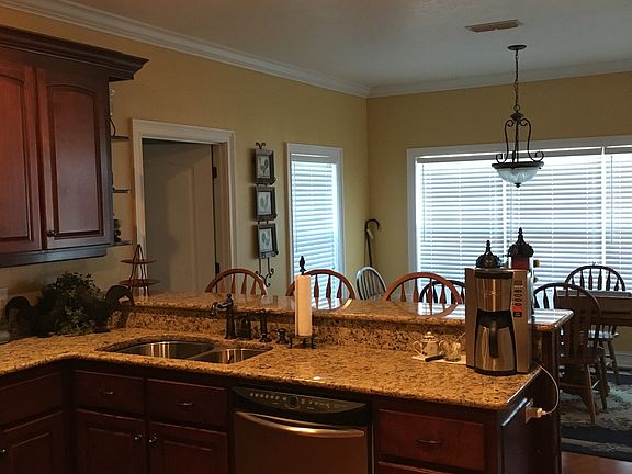This is a beautiful Southern Living style home, inside and out. It is a great home to raise a family in and the neighborhood is very family oriented. It is a great design for entertaining and it decorates beautifully for Christmas. The kitchen is a beautiful work place, complete with Custom Cherry Cabinets, granite countertops and a bar-top, that separates the kitchen from the breakfast room. There is also a walk-in pantry, and a large laundry room with lots of storage and a mud sink. There is a beautiful Trey Ceiling in the dinning room, which is separated from the great room with decorative columns. The great room has a beautiful wood burning fireplace with a granite face to match the granite countertops in the kitchen. The great room connects to a screened-in back porch that overlooks a large patio and an outside kitchen. The Master Bedroom and bath is a show piece and is complete with a large walk-in closet. The downstairs also has a large guest bedroom and bath. The ceilings are 9' throughout the downstairs. The beautiful Oak tread staircase leads to a gorgeous balcony that overlooks the great room. Upstairs, there are two large bedrooms and a bonus room that can be used as an office, an additional bedroom or such. There is a full bath, as well.