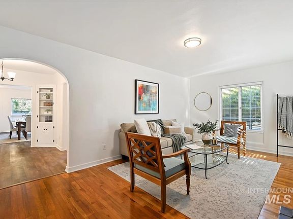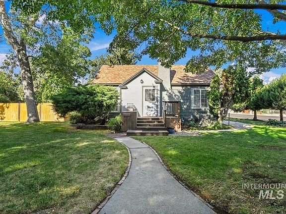 Step into timeless charm! Built in 1937 this iconic Boise Bench home is a classic beauty ready to embrace your story. 2,052 SF, 3 beds and 2 baths, thoughtfully laid out on a single level with a cozy basement. Feel the history beneath your feet with original hardwood floors. Living room boasts brick fireplace, perfect for warm gatherings. Discover architectural archways and antique hardware that tell tales of craftsmanship. A flex room awaits your touch - an office, a family haven, or a stylish dining space. Antique Speakeasy door knocker/viewer on front door adds a touch of whimsy. New vinyl flooring and carpeting. Basement offers third bedroom but does not have egress windows and bonus room showcasing built-in shelving & under stair storage. Utility room with convenient half bath and ample cabinet space. New interior paint throughout. Mature landscaping on fully fenced corner lot. Garden shed, a large yard, and an outdoor fireplace beckon you outdoors. Single-car garage, carport, RV parking.