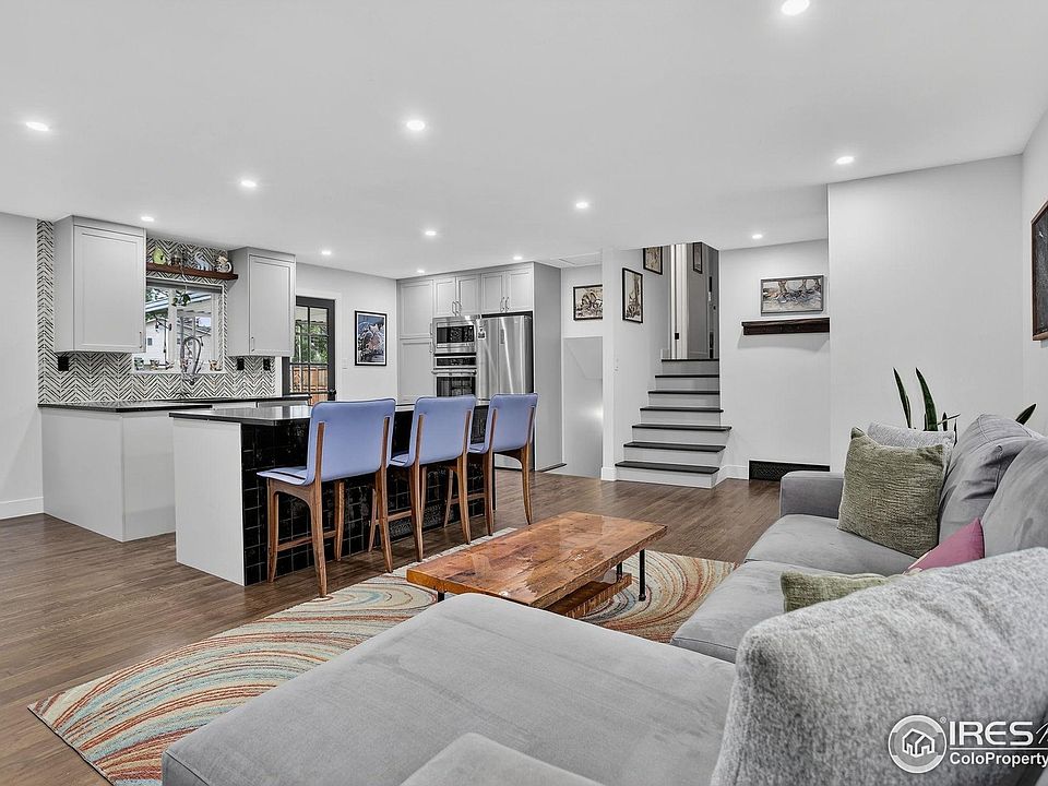 Charming tri-level on a corner lot! This beautifully updated home is move-in ready and filled with modern upgrades. The refinished hardwood floors flow throughout the main level, leading into an updated kitchen with shaker cabinets, sleek countertops, stainless appliances, and striking black walnut accents. Both bathrooms have been completely remodeled, and the home features updated windows with stylish cellular blinds, new solid core doors with upgraded hardware, fresh interior and exterior paint, overhead LED lighting, and thoughtful design details throughout.Upstairs you'll find three comfortable bedrooms, while the lower level offers a flexible space that can serve as a family room, office, or playroom. Step outside to the private backyard with a covered patio, new fencing, all-new landscaping, and a full irrigation system, and raised garden beds. Big, beautiful, well-cared-for trees provide shade and privacy, making this outdoor space perfect for relaxing or entertaining on summer evenings.Additional updates include a new high-efficiency furnace, updated electrical, and an electric car charger. Located near an elementary school, neighborhood pool, and park, with easy access to shops and downtown. A must-see!