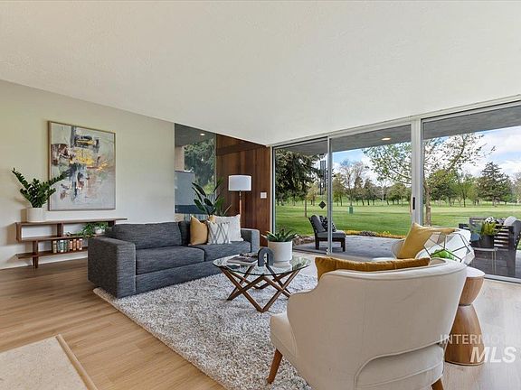 Mid-century modern home with floor-to-ceiling windows welcomes you to a light filled space in keeping with a mid-century ambiance. Peaceful evenings blend from indoors to outdoors with unparalleled views of Hillcrest Country Club from two separate patios facing west and north. Entertain effortlessly in your spacious kitchen with stainless-steel appliances, Quartz countertop and plenty of cabinets. Upstairs two bedrooms welcome you, one with a sliding door to a private deck with views to the west. A full bathroom with dual vanities and shower completes the upstairs. The third bedroom is downstairs and offers a private walk-out option to the shady backyard. This is low maintenance living at its best. Hillcrest Country Club is a premier private club offering an 18-hole course, fine dining, club pool and social events to bring people together. Separate membership required.