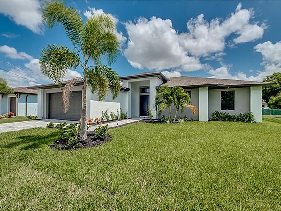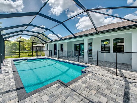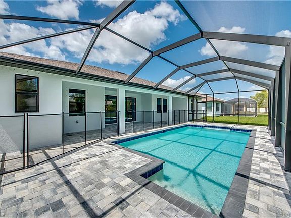 NEW CONSTRUCTION POOL HOME IN SW CAPE TO BE COMPLETED BY JUNE! This 4 Bedroom, 3 Bath, 2 Car Garage home comes with all the Bells and Whistles. Home is 2,010 sq ft under air with a total of 3,998 sq ft when you include your 1,402 sq ft lanai with an oversized pool! The Kitchen has been decked out with 42" All Wood Cabinets, Stainless Steel Appliances, Granite Countertops, and a huge Kitchen Island. Designer plank tile flooring installed throughout the main living areas and Carpet in the Bedrooms. This home has a Paver driveway, Paver pool deck, complete landscape package with sprinkler system and flora tan sod. The interior specs are 12' Ceiling in living area, 8' doors, 5 1/4" Baseboard with 3 1/4" Casings, Soffit lighting outside, Frameless Glass Shower Enclosure, Stand Alone tub in the master bath, Trey Ceilings in the living room and master bedroom, pendant lighting in the kitchen, pool bath and so much more. This home is located in the desirable SW section of Cape Coral, has Noethern Exposure and comes with a 1 year builder warranty.