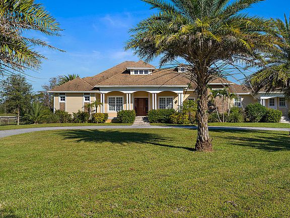 BEAUTIFUL EQUESTRIAN PROPERTY IN TRAILSIDE. ALMOST 4,000 SQ FT UNDER AIR, CBS CONSTRUCTION, BUILT IN 2009, 20 ACRES, 16 STALL BARN AND TACK ROOM, 3 CAR GARAGE WITH EXTRAL TALL BAYS, LOFT OVER GARAGE PERFECT MEDIA ROOM/GAMEROOM, WET BAR WITH GRANITE COUNTER AND WINE CHILLER, MASSIVE KITCHEN WITH TWO GRANITE ISLANDS, GAS STOVE, PANTRY; FIREPLACE, PLANTATION SHUTTERS THROUGHOUT. IMMEDIATE OCCUPANCY. VAULTED CEILINGS THROUGHOUT. WETLANDS ON THE PROPERTY MUST BE MAINTAINED BY OWNER, PER MARTIN COUNTY REGULATIONS (PERCENT VERIFIED BY ASSOCIATION PRESIDENT).