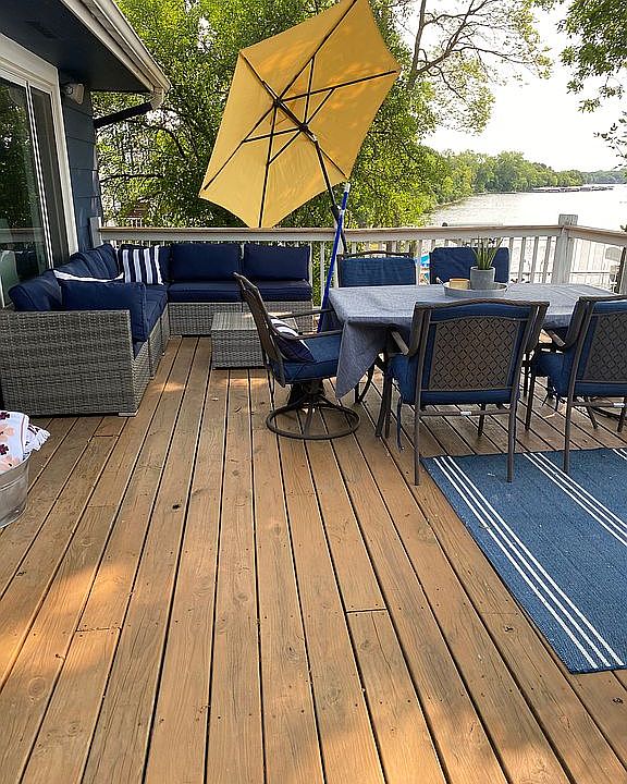 4 bedrooms 3 up 1 down. Downstairs bar. 2 rock wall fireplaces. Beautiful beaches lower and uppper beaches