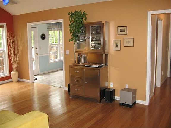 All brick ranch style home which features: 3 bedrooms, 2 full baths, split bedroom floor plan, bamboo flooring, living room with brick fireplace, formal dining room, eat-in kitchen, jetted tub in master bathroom, first floor laundry, large family room in basement, theatre room, basement plumbed for an additional bath, large deck that overlooks your wooded backyard and wonderful views from all windows. Call for your showing today! Seller wanting to down-size. May consider trade for home in Jeffersonville.