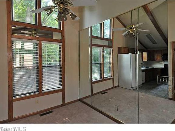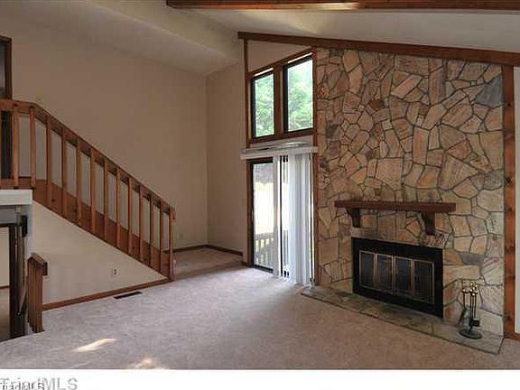A split-level home, you walk into a large living room, and the kitchen and breakfast nook are on the same level. This main level is a mixture of carpet, hardwood and ceramic stone flooring, with large mirrors. It also has a sliding glass door that goes to the deck and side yard. Downstairs is a second bedroom (carpeted), second full bathroom and a wet bar and recreation room/family room (carpeted), with a sliding glass door to a patio. Upstairs from the main level is a large master bedroom, an office, and the master bath, which has two sinks, a shower and a separate, jetted bathtub. The upstairs, with the exception of the bathroom, is carpeted, and the master bedroom has a closet that takes up one entire wall and the doors to the closet are mirrored. Neighborhood Description Stonewood is a collection of single-family "cluster" homes that are detached. They have small fenced in "side yards" with decks and patios, and all other lawn is considered common area and cared for by the homeowners association, which also handles upkeep of roads, retaining walls, tennis courts and a basketball court. Stonewood is a quiet neighborhood close to Bolton Park, Hanes Mall, I-40 and both Baptist Medical Center and Forsyth Memorial Hospital.