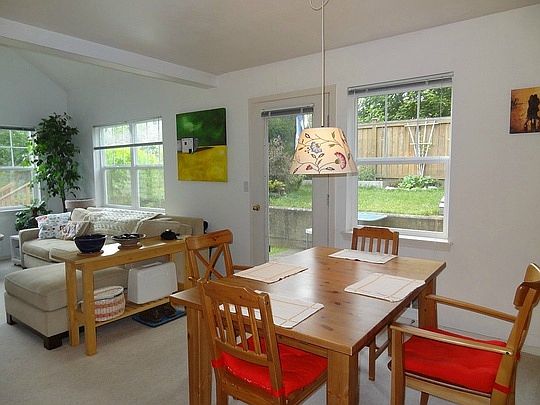 Bright and cheery 3 BD/2.5 BA townhouse located in private enclave off dead end street that abuts walking/biking trail to Barkley Village or across town. Vaulted ceilings, gas fireplace, open kitchen with lots of cabinets & pantry, big master with full bath. Cute patio & garden space in back, full 2 car garage & storage. Immaculate, affordable & on the bus line!