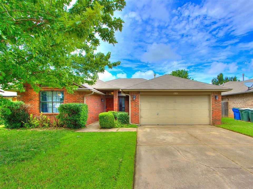 Welcome to Pebble Creek located in Edmond's finest school districts with a community pool. This wonderful three bedroom, two bath home with a two car garage is ready for you!! As you enter the home you have a spacious great room with a brick fireplace and wood mantle. The house has wonderful natural lighting. All this flows to the eating space off the kitchen - the kitchen features tile flooring - updated appliances! The master bedroom has ample space featuring a vaulted ceiling and a walk in closet paired with a spa tub and standup shower in addition to a his and her sink! Fresh neutral colors throughout make this move in ready home for you!! The backyard features a flat playing area great for kids, privacy fencing. Call today to make your showing appointment!