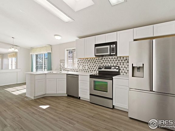 Located in a 55 +Community, step inside this spacious (1728 sq ft) 3 bed 2 bath home that has been beautifully and thoughtfully updated! All new vinyl flooring throughout the home, all new paint! The Kitchen has new: cabinets, SS refrigerator, countertops, backsplashes, light fixtures, floor, and paint! The Family room features a gas fireplace with two side benches with storage. Located in the front of the house is a separate large living room with big windows that allows amazing sunlight to fill the home! Separate laundry room. The 5-piece primary bathroom attached to the primary bedroom has new tile, new countertops, and light fixtures. Great storage racks and shelves in the primary bedroom closet are included. The home has 5 ceiling fans throughout the house, 2 driveways, 2 sheds, 2 skylights, and 2 entrances to the home! The UPDATES on this home are AMAZING~ Come check it out for yourself! Buyers must be approved by the park prior to offer. Monthly lot rent:$1109. Lenders are available! Quick close and possession are possible