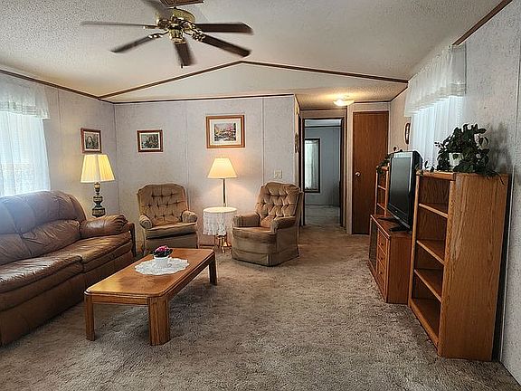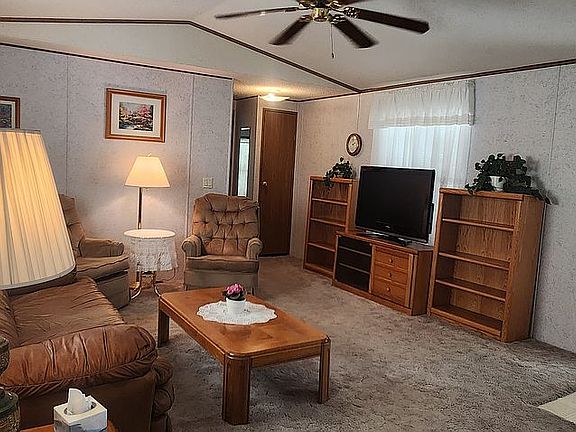2 bed 2 bath, 1994 singlewide in a ***55+ SENIOR COMMUNITY*** 3 car driveway with a covered car port and covered front porch. Open concept living! Vaulted ceilings and central a/c!All kitchen appliances included as well as the washer and dryer! Plenty of space in this home! Master bedroom has a private bathroom with a walk in shower, a large closet and plenty of room for your king size bed!