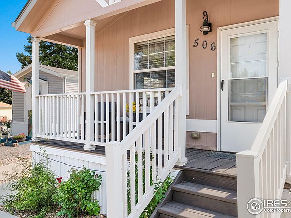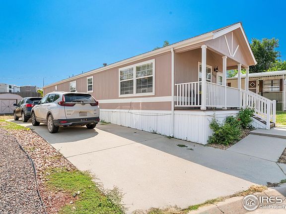 This charming home is located in a 55+ community in Federal Heights and features 2 bedrooms and 2 bathrooms. The primary bathroom includes a walk-in shower. It boasts a large driveway that can accommodate up to 4 cars and a cute covered front porch. As you step inside, you'll find a cozy living room and a kitchen with ample windows on both sides, allowing natural light to fill the space. The laundry room serves as a secondary exit from the home. Recent upgrades include a new furnace, a 4-year-old roof, and a 4-year-old washer/dryer. All appliances are included with the home. Please note that residents must be 55 years of age or older to purchase and reside in this community. The community offers a large outdoor pool, a hot tub, a library, a billiard room, a clubhouse, a community hall, various activities, and trails throughout the park. Park approval is required before purchasing. LOT RENT $1188 MONTHLY-PLEASE VERIFY WITH PARK. HOLIDAY HILLS. DOGS ARE ALLOWED. FENCES, CARPORTS ARE ALLOWED.