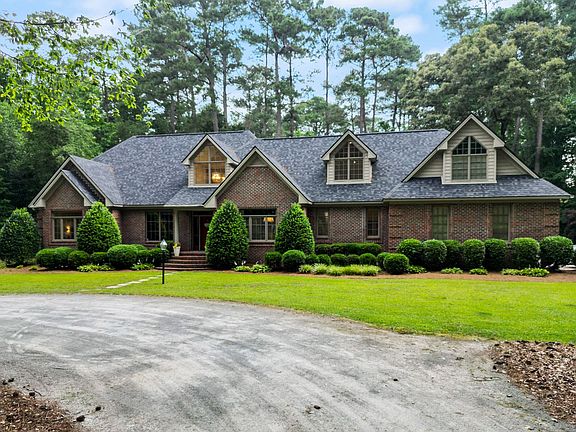 Welcome to 1801 W New Hope Road! Situated on 8 acres of serene land, just minutes from Wayne Memorial Drive. As you enter, you'll be welcomed by a breathtaking two-story foyer. The dining room is elegantly appointed with a tray ceiling, upgraded lighting, a butler's pantry, and a large window that floods the space with natural light. The kitchen is a chef's dream, featuring custom cabinetry, granite countertops, a tile backsplash, stainless steel appliances, a breakfast bar, and a spacious pantry, all overlooking the secluded backyard through a large window. The main living room offers ample space for a large sectional, complemented by built-in bookshelves, and additional storage. The office exudes a rich, sophisticated ambiance with dark wood finishes, built-in cabinetry, a locking gun cabinet, and French pocket doors. The second dining area or sunroom boasts breathtaking views and a soaring cathedral ceiling. Adjacent to this space is a well-equipped wet bar, complete with a sink, ample storage, and a built-in wine rack. The primary suite is a luxurious retreat, with enough space for a king-sized bed, a cozy reading nook, and a built-in ironing board. The ensuite bathroom features double vanities with granite countertops, a walk-in tile shower, a large soaking tub, and expansive double closets with custom built-ins. The grand staircase leads to the second floor, where you'll find two generously sized bedrooms, a large bonus room, and additional flex space. Both bedrooms offer walk-in closets with built-ins and easy access to attic storage. The bonus room includes built-in cabinetry, storage closets, and walk-in attic access. The backyard is ideal for entertaining, with a large brick patio and the perfect layout for adding an in-ground pool, as the septic tank is conveniently located at the front of the home. This prime location offers easy access to shopping, dining, and more. Landscaping is included. This home is offered by Eagles Properties, Inc.