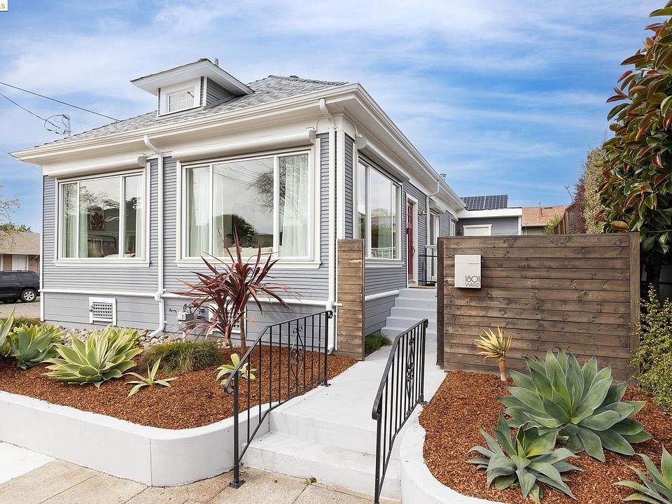 Welcome to your Berkeley sanctuary! Nestled on a charming corner lot, this captivating home invites you to experience comfort and style. The meticulous front yard succulent garden sets the stage for the beauty within. Inside, an open, airy floor plan with high ceilings and rich hardwood floors contrasts beautifully against the crisp white walls. The front living space seamlessly transitions into the dining area and designer kitchen featuring peninsula seating for guests, elegant marble countertops, farmhouse sink, a unique tile backsplash, and high-end stainless steel KitchenAid appliances. Sliding glass doors offer indoor-outdoor living. Two bedrooms boast large windows and closets, with a fully updated designer bathroom situated between them. The large primary en-suite at the rear provides a private retreat with its own stylish bath and dual closets. A finished attic offers the extra bonus space for home office or makers space. Don't miss the oversized laundry closet and fun tiled powder room. Nearby amenities include parks, dining and shopping options. Commuters will love the short 10 minute stroll to Ashby BART. What a wonderful opportunity to make this charming Berkeley home your own!