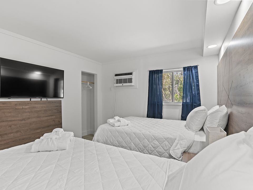 Welcome to Fin's Inn! Just two short blocks from the beach, our suite welcomes you with a cozy sleeper sofa and sleek TV in the living room area. Explore our fully equipped kitchen with modern appliances and a dining area. Relax in the bedroom area with two queen-sized beds. Enjoy the full bathroom with plush towels and toiletries. Ideal for family, friends, or colleagues seeking comfort and functionality! Smoking is not allowed. all utilities are included