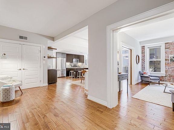 Elegant loft living at its best! Two bedrooms + den + two full baths + a private balcony. This special unit starts with an elegant foyer with built-ins and a large closet. This is a space to unwind from the day and includes open wall space for hanging art or even a bike. The den offers tremendous flexibility--a tv room, guest space, or even a home office. The kitchen and dining spaces are open for ideal day to day living. Counter seating for four, stainless steel appliances, ample cabinet storage and a large pantry closet. The generous primary suite features a large closet and is en-suite. The nicely sized second bedroom also has a large closet and lovely natural light. The second full bath is accessed off of the hall and includes a tub/shower combination. This unit has new, stunning hardwood floors, exposed brick, high ceilings, in-unit laundry, and a private balcony. The Warrington features an expansive roof deck with 360° views perfect for sunset dinners and a courtyard with a water feature. There is even a shared bike room. Enjoy city living at its best with the endless dining and entertainment options that Adam’s Morgan, Kalorama, U Street, and Dupont Circle have to offer. Metro and bus close by make commuting a breeze. In bounds for Oyster-Adams! Pet friendly.