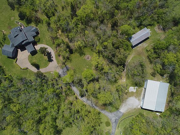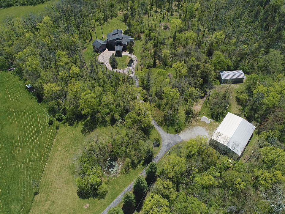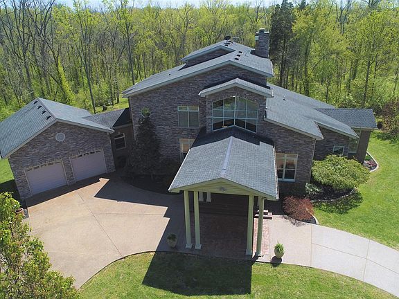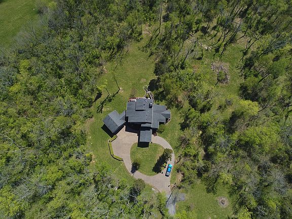 Gorgeous home on nearly 12 acres, gated and very secluded park like setting. As you drive up the circular drive the large portico will keep you and your guests dry. As you enter into the grand foyer you will see a custom chandelier that can be lowered for easy cleaning. The foyer boasts 26 ft ceilings and a grand staircase. To the right of the foyer there is a large office with a unique dome ceiling. The dining room has gorgeous marble tile and tons of natural light. Walk into the living room and you find 24 ft coffered ceiling, huge windows, a remote that brings the mirror above the fireplace up and down to hide the tv, wood burning fireplace and built ins for lots of storage. The kitchen has granite counters, large island, large pantry, separate desk area and appliances to remain. There is a huge composite deck off the kitchen with sweeping views of the secluded property and all the wildlife. The main floor has a half bath for you and your guests convenience. Huge main floor laundry room with sink and lots of storage. The mud room has a sink and leads to the 2 car garage. The master suite with trey ceiling boasts lots of windows and a sitting area with vaulted ceilings. The master bath has a huge walk in closet, jetted tub, walk in shower, double vanity and tons of storage. Upstairs there are 2 additional bedroom suites each with their own full bath , laundry shoot and walk in closets. At the top of the stairs there is a bookshelf that has hidden access to the attic. The finished basement has tons of storage throughout. There are 2 additional rooms that are used as bedrooms and a full bath. There is a workout room, living room with surround sound as well as a game room with full bar, sink and cabinets. The half bath in the basement has additional laundry hookups. As you exit the basement you see a beautiful stamped concrete patio with custom fire pit. This home has 4 zoned heat/air geothermal for maximum efficiency. There are many arched openings and tons of windows throughout this home! Outside you have 3 acres of invisible fence with 1 collar. There are 2 huge outbuildings on the property. One of the outbuildings has a 1 bedroom/1bathroom apartment with eat in kitchen, living room and laundry room. The apartment also has a garage within the outbuilding for ease of getting in and out in bad weather. The property has walking trails and pond. No expense was spared when building this home! This is a must see! Priced 50,000.00 below appraisal!! Conveniently located 5 miles from Gene Snyder Freeway. Call today for your personal showing!