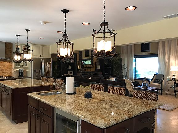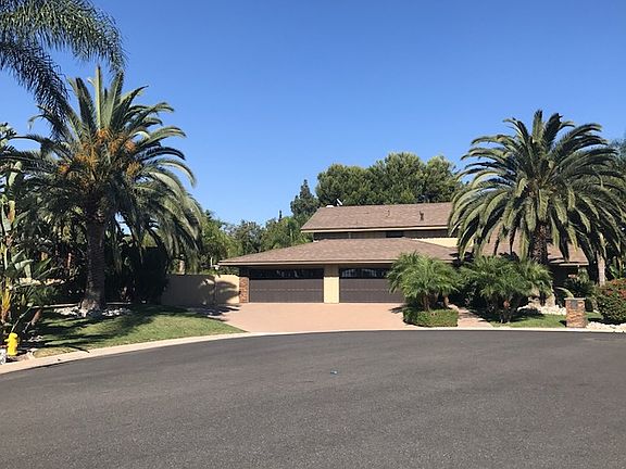 Very impressive estate set on quiet cul de sac in heart of Villa Park. Amazing curb appeal with huge specimen palms and incredible landscaping throughout. Car collectors dream with four car garage plus additional building to house two further vehicles. Gated driveway with space for several r.v.'s/boats or more vehicles. Plus a Separate shed which could house motor/dirt bikes and more. Enter through beautiful customer glass/wrought iron doors to two story entry to a WHOW- completely open "great room" design with enormous kitchen with two separate islands and seating for 8 plus. Large Open formal living room and separate dining area with eating areas galor. Huge open areas for entertaining with multiple exterior doors overlooking Architectural Digest Grounds. Ground floor office/bedroom with its own entrance and private bath (could be separate guest quarters or business office). All secondary bedrooms are spacious plus a double size bedroom which is a bonus room or could be converted to more bedrooms. Master bath has its own balcony overlooking the grounds. Wait...the grounds are 5 star hotel quality. Outdoor fireplace and living/lounging area, huge outdoor bar and kitchen, Hawaii style pool/spa area with beach entry. Putting green/basketball area, room for kids to play - must be seen to be appreciated. Photos do not do this property justice. Buyer to verify square footage.