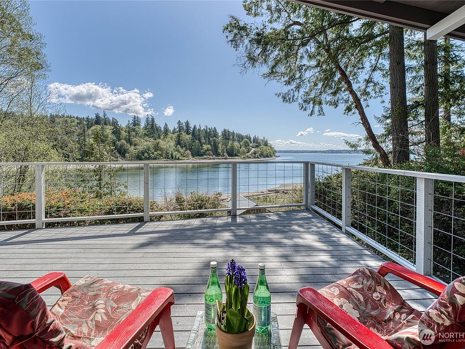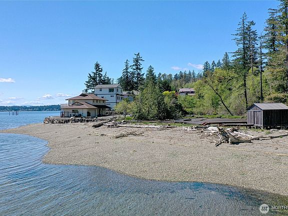 You’ll love coming home to your single-level waterfront retreat w/spectacular views & private beach! Paddle the Puget Sound from your front yard--or relax & take in the ever-changing water views from your partially covered deck off the cozy living room w/gas fireplace...perfect for year-round enjoyment. Fabulous 2-bedroom, 1 bath home w/welcoming covered porch, boathouse, detached carport; plus, shed & studio both have power–all on 2.25 peaceful acres w/fruit trees & fenced garden space. Auto-generator, on demand hot water & double water filtration system. A meandering path & boardwalk lead to your 154' private beach w/huge sandspit, driftwood sea & life galore! Next to Taylor Bay Park & close to Joemma State Park, boat launches & marinas.