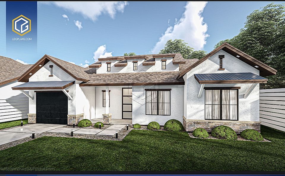 Welcome to this beautifully designed 3-bedroom, 2-bathroom home in the sought-after Hidden Woods Subdivision of Harlingen, TX. The exterior boasts modern farmhouse charm with crisp white siding, natural stone accents, sleek black trim, and a bold black garage door that give this home remarkable curb appeal. A well-lit walkway, manicured landscaping, lush sod, and a built-in sprinkler system lead you to the inviting covered entry.