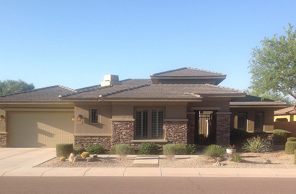 Exceptional home built by T. W. Lewis in Fairways community, Estrella Mountain Ranch with over 200K in upgrades. Raised hearth gas fire places in courtyard and great room. Custom beech wood cabinetry throughout. Dinning room has coffered ceiling, stone accent wall, double french doors to front courtyard and adjacent wine closet. Two guest bedrooms each with 4 piece en suite. Master bedroom has two large walk-in closets and 5 piece en suite with dual entry shower. Kitchen features Kitchen Aid stainless steel appliances, gas cooktop, center island, desk area, breakfast nook, and separate butler's pantry. All countertops are granite. Three sets of double french doors open to patios. Rear patio has southern exposure with travertine pavers, built in BBQ, spa and raised garden area. Three car garage includes custom storage cabinets. Amenities include Nicklaus designed golf course, Residents Club with fitness and aerobics center, waterpark and heated pool for year round use, two lakes for canoes, kayaks and fishing, many miles of maintained trails for hiking and biking in 19,000 acre Estrella Mountain Regional Park. http://www.lifeinestrella.com/estrella/