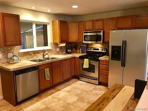 Spacious and beautiful home with lots of updates! Finished basement! Large attached sunroom (15'x11'6)! Gorgeous new wood look tile flooring in living room! Huge eat in kitchen with tile countertops and flooring! Stainless appliances including refrigerator! New interior paint and new carpeting and pad in family room and basement! New garage door, sliding door, front screen door and interior door from garage! Swamp cooler was replaced in Summer '17! Roof is only 3 years old! Huge master with big walk in closet. Both bathrooms have tile countertops, showers and floors! Second bedroom upstairs has walk in closet! Big yard with shed and dog run! Radon mitigation system installed! Washer and dryer stay!