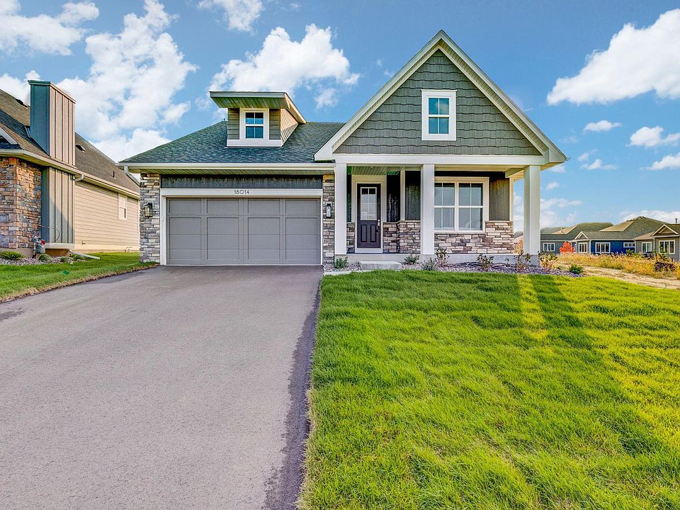 The 'Charleston' model greets you with stunning exterior architecture, gorgeous stone detail along with a covered & extendedfront porch. Main level living! Open, bright & cozy, this floor plan has natural light flooding in with all of the large windows.Quality details, thoughtful design and beautiful finishing touches; 2 bed, 2 bath, 2+ car garage w/ tandem push back foradditional storage. Mudroom entry provides direct access to the laundry room and further on into the master W/I closet. SSappliances, oversized center island, quartz tops, 9' ceilings throughout, gas fireplace in great room w/ stone floor to ceiling,and custom built in cabinetry. Ample storage throughout. Easy access to both Cedar & 35.