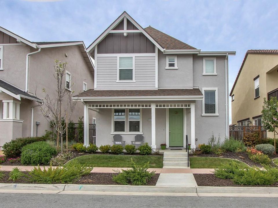 Chic home with character and custom after market upgrades! Great room feels airy with high ceilings and flows comfortably and with function. Chef's kitchen scores for Blanco Romano granite counter tops, custom back splash, cherry cabinetry, professional grade GE Cafe appliances, large island with seating and double sink. Hand scraped Maple Appaloosa hardwood floors grace the first floor. Powder room perfect for guests. Take advantage of patio finished with brick pavers and perfect for entertaining, relaxing, planter garden and pets. Master suite with generous walk in shower, double sink vanity and dream walk-in closet with custom closet system. 2 additional bedrooms, full bath and laundry room with cabinetry and washer/dryer. 2 car garage with storage. And finally, must mention a very important feature in East Garrison, the warm and welcoming all American front porch.