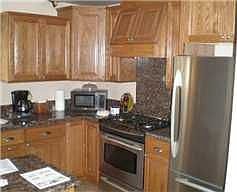 Small but nice, upgraded kitchen , fireplace and bathroom. Pond with waterfall and deck, event parking