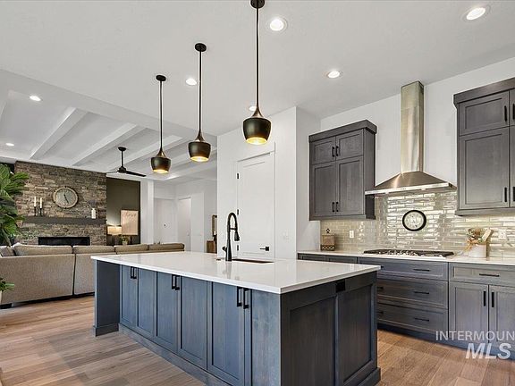 Imagine coming home to the breathtaking Sawtooth model, cradled in the serene, rolling hills of Avimor, just moments from the charm of Eagle and the vibrant pulse of downtown Boise. Stunning 2,566 sq ft single-level retreat, nestled on a tranquil quarter-acre+ lot, invites you to savor both luxury and ease. Located directly across from BLM land and spectacular foothill views in front and back, it features a split floor plan with high ceilings, three spacious bedrooms with walk-in closets, 2.5 modern bathrooms, an office, and a bonus room. The primary suite offers patio access, a large walk-in shower, a stylish soaker tub, and dual walk-in closets. The chef’s kitchen boasts stainless LG appliances, sleek finishes, and a large island, flowing into the dining and living areas. Top Down Bottom Up window shades, extensive landscaping front and back, a whole house Ultra Water filtration system, a solar tube by the laundry room, a stainless steel wash out sink in the garage & more! A must see home! Welcome Home!