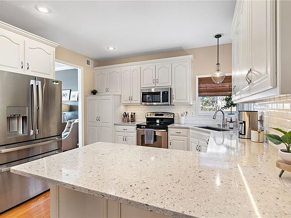 Welcome home to a beautifully updated Kitchen with white cabinets, tile backsplash, quartz countertops with a granite single sink. Enjoy the oversized end of the cul-de-sac backyard under the covered patio or outdoor living patio all surrounded by a professionally landscaped yard. Do you have children, grandchildren, nieces or nephews? They will love the Custom play structure that remains with the property. The family room boasts of a newer direct vent fireplace and surround sound. A true "mudroom" off the garage for shoes and all the extras. Large master bath, updated tile and vanity. And it has an expanded closet for laundry. Finished basement includes area for extra toys or crafts or office and a TV/gaming space with a finished full bathroom. Stonebridge neighborhood has 4 pools, 4 parks, a cub house with fitness center, sports courts and walking trails. This great property is within walking distance to Arbor Landing Park, Hampton Park and easy access to Indian Creek Trail. Check out this move in ready beauty!