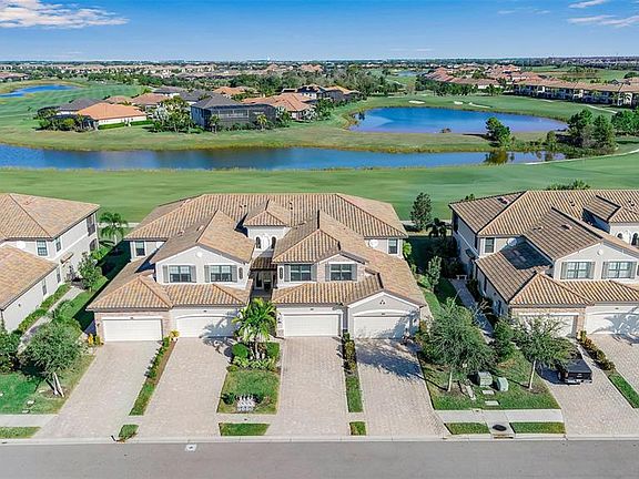 Welcome to resort-style living in the heart of Lakewood National! This impeccably maintained Bay Creek coach home offers 3 spacious bedrooms, 2 full baths, and over 2,100 sq ft of beautifully designed living space—all overlooking the 11th hole of the Piper Course with serene golf and lake views. Built in 2020 and gently lived-in since late 2020, this home lives like a single-family residence with its private ground-level entry, 2-car garage, and open, airy layout. The gourmet kitchen features an oversized island, walk-in pantry, granite countertops, stainless steel appliances, and upgraded cabinetry—perfect for everyday living or entertaining with ease. The main living area flows effortlessly to the screened lanai, where sunsets and sweeping fairway views create the ultimate backdrop. The primary suite offers a peaceful retreat with dual walk-in closets and a spa-inspired bathroom complete with double vanities and a spacious walk-in shower. Two additional guest bedrooms provide flexibility for family, guests, or a dedicated office. As a resident of Lakewood National, you’ll enjoy a lifestyle that is second to none. World-class amenities include two championship Arnold Palmer–designed golf courses, a resort-style pool with cascading waterfalls, a full-service spa, poolside dining, pickleball, tennis, a state-of-the-art fitness center, and the Grand Clubhouse. This community truly embodies the Florida luxury experience. Whether you’re seeking a full-time residence, seasonal home, or an investment opportunity with excellent rental potential, this property delivers exceptional value, comfort, and resort living all in one.