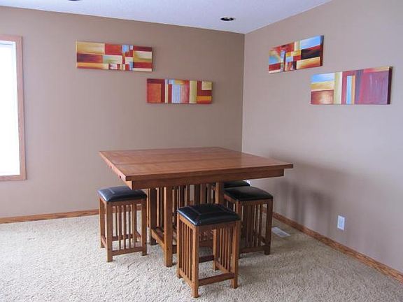 You'll love the location of this contemporary ranch built in 2005, located between elementary and middle/high schools - five minutes away - one block from Wiese Park trail and golf range. Quality features include 2x6 construction, cedar deck and gazebo with gas hot tub, hardy cement board siding, Marvin windows with fiberglass exterior, finished basement with high ceilings, pre-plumbed for bar. Sunken living room has gas fireplace with hand built mantle and oak entertainment storage, solid oak doors and woodwork, top of the line Kraftmaid kitchen and bathroom cabinets. Central vac, exterior uplighting installed and sprinkler system installed for plants and flowers in 2010. Unique home with well designed floor plan for comfort and entertaining.