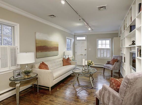Sun-filled semi-detached Burleith TH w/ deceptive amt of space. Expansive floor plan w/ private flagstone terrace & garden. LR w/ built-ins, OVER-THE-TOP gourmet Kitch w/ SS appl. Attch DR, glass doors leading to terr. Mstr BR w/ private sun deck. 3BR, 2BA. LL laundry rm. HW flrs & fine finish. Off-street PARKING.