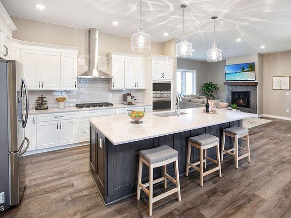 Nestled in the highly sought after Highlands community, this sprawling neighborhood is right where you want to be, the homes are intentionally designed by the prestigious Paramount Builders. Sitting on a spacious corner lot, this beautiful home greets you with luxurious finishes, lush landscaping and a cozy front porch-the perfect spot to relax with a cup of coffee. As you step inside, you first find yourself in the gorgeous foyer and then on to the modern, open-concept entertaining space. Natural light pours inside, highlighting the soaring ceilings and designer flooring throughout. Friends and family will love gathering around the fireplace in the living room or a large table in the dining area- both totally open to the stunning gourmet kitchen. Custom cabinetry, premium quartz countertops, and brand-new stainless-steel appliances make this space as beautiful as it is practical. Plus, a bonus breakfast bar seating offers even more to entertain. Equal attention to detail in the incredible Owner's Retreat which boats a large walk-in closet and spa-like ensuite. Built for all the practicalities of family, this home was designed with function in mind including a large laundry room, mudroom space, and a heated 1,100 sf garage.