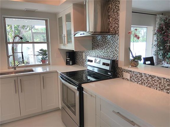 Beautiful Village Green 4-bedroom home sits on over a quarter of an acre with a circle driveway. As you enter you are greeted by an open floor plan great for entertaining, expansive views and wide-plank solid hardwood flooring. Cooking will be a pleasure in this modern kitchen with quartz counter-tops, all new stainless steel appliance package with ice and water dispensing refrigerator, a deep zero radius sink, commercial style faucet and a breakfast bar. Enjoy the ultimate in relaxing with plenty of lounge seating and dining areas under the large screened-in patio which is accessible by patio sliders from the master, family and dining rooms. This patio leads to an impressive bonus space, an enclosed private courtyard oasis with Florida sea shells and mature landscaping. This space is great for barbecuing, entertaining, relaxing year round and great for pets. The master bedroom with hardwood flooring has a large modern en-suite bathroom with dual vanity sinks, walk-in shower with frame-less glass enclosure and a walk-in closet with plenty of storage. Relax and enjoy your coffee in the breakfast nook off the kitchen or the cozy family room. Use bedroom 2, 3 or 4 as an office or guest room each with lots of natural light. Laundry room is indoors and provides access to the 2 car garage. Extra features include plantation shutters on all windows, guest bedrooms with new Berber carpeting, new garage door. This home is clean, bright, and truly move-in ready.