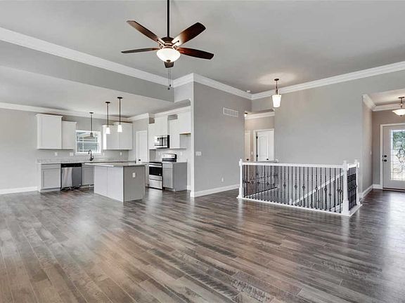 Come see this move in ready 3 car 3 bedroom ranch!! Boasting with extras this is a must see! Upgraded flooring throughout custom tile work in master shower with not one but two shower heads with custom glass surround, adult height vanities and granite on every countertop! Custom cabinets with crown moldings and oversized island with wine fridge!! Fully sodded yard and landscaping on both front and rear plus custom blinds on all windows! This is a brand new home with everything included!