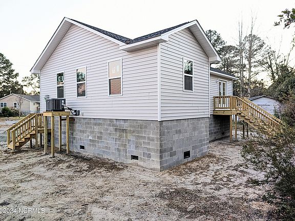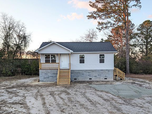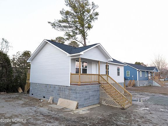 Welcome to your future home in New Bern, NC - a perfect haven crafted with simplicity in mind, designed for effortless home ownership. This cozy single-level house features 3 bedrooms and 2 full bathrooms, providing an ideal space for you to create lasting memories. Climb the front steps to a nice porch giving you peace of mind your house is elevated above the FEMA flood plain. Then on those evening nights, relax on the rear deck overlooking the backyard. Step into comfort with luxury vinyl plank flooring in the living areas, plush carpeting in the bedrooms, and vinyl flooring in the bathrooms. The convenience continues with a dedicated laundry room equipped with hookups for your washer and dryer. Experience year-round comfort with the electric heat pump that efficiently heats and cools your home. As well as, the stainless steel Whirlpool stove, range, and dishwasher in the kitchen. Situated in close proximity to quaint downtown New Bern and the Carolina East Health System, this affordable new construction is ready to become your very own!