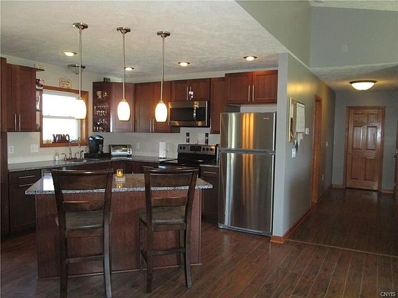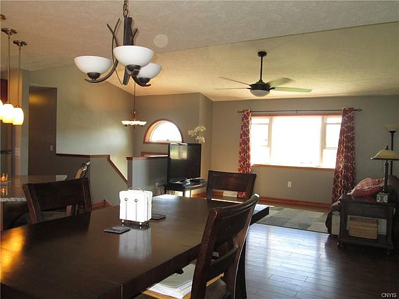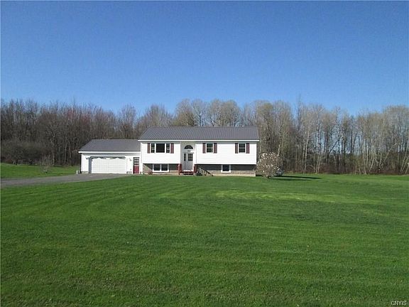 Immaculate Raised Ranch on 1.84 acres in Palermo- Mexico School District. This home has been tastefully updated in 2012. Bright open floor plan with vaulted ceiling in living room. Kitchen features granite counters, island/breakfast bar and stainless steel appliances. Master Suite offers plenty of room for king size bedroom furniture, walk-in closet and private bathroom with a double vanity and ceramic tiled shower. Family Room in lower with coal stove and 3rd bedroom. Laundry room and 2 walk-in closets offer plenty of room for storage. Metal roof and central air unit were new in 2016. Deck leads to stamped concrete patio with fire pit in. Great home in quiet area located across from town park. Taxes shown without exemptions.